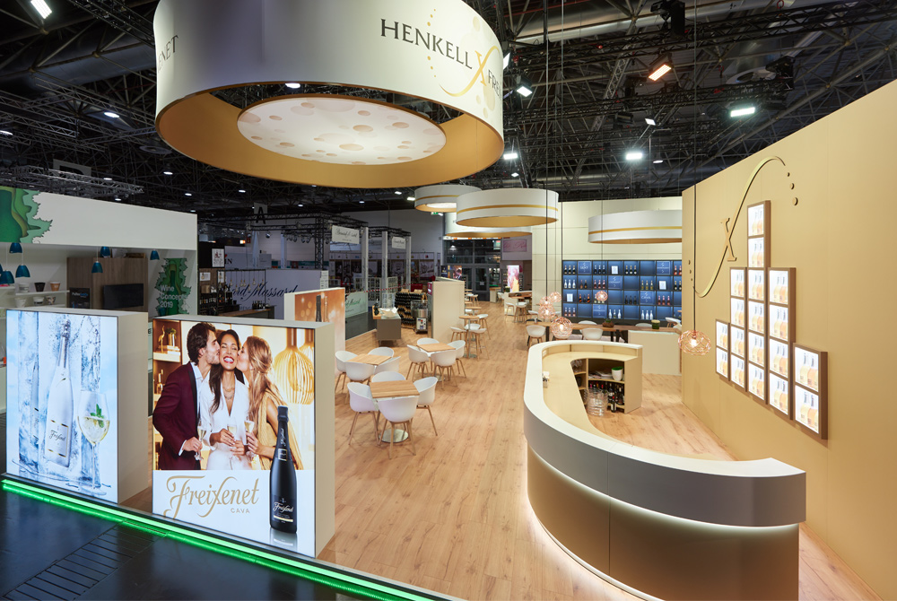 „Celebrate Life“ war das Leitthema des international führenden Schaumweinanbieters Henkell Freixenet beim ersten gemeinsamen Auftritt auf der ProWein in Düsseldorf. Nach allen Seiten offen und einladend und unter einem augenfälligen Dach von „Sektperlen“ in Form von deckenschwebenden Ringen präsentierten sich die Partner auf einem 320 qm großen Inselstand dem Publikum zum Erleben und Mitfeiern.